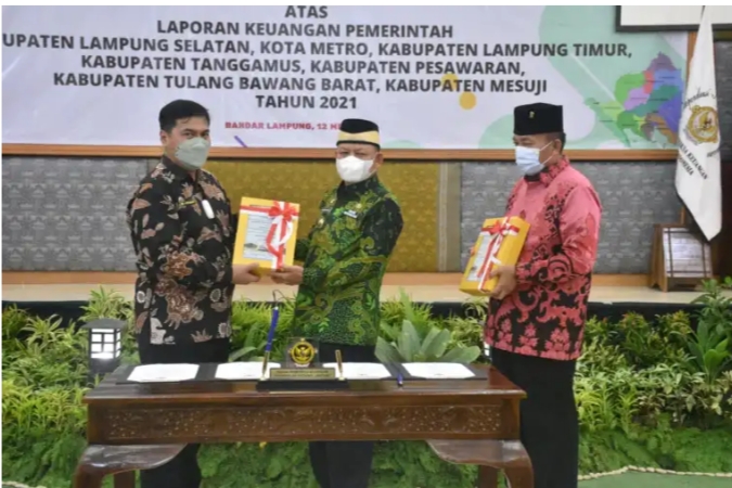 KREDIBELL.COM (BANDAR LAMPUNG) – Bupati Lampung Timur M Dawam Rahardjo Menghadiri Acara Penyerahan Laporan Hasil Pemeriksaan Atas Laporan Keuangan Pemerintah Kabupaten Lampung Timur Tahun 2021yang dilaksanakan di Kantor BPK perwakilan Provinsi Lampung, Kamis (12/05/2022).