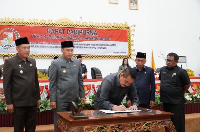 Kredibell.com (Tubaba) – DPRD Tulang Bawang Barat (Tubaba), gelar Rapat Paripurna dalam rangka Pembicaraan Tingkat II atas Rancangan Peraturan Daerah (Raperda) tentang Pertanggungjawaban Pelaksanaan APBD Tahun Anggaran 2024. Rapat tersebut berlangsung di Ruang Rapat Paripurna DPRD setempat yang dihadiri oleh Bupati Tubaba Novriwan Jaya, pada Kamis (19/06/2025).