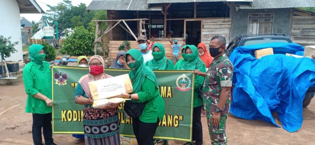 Ketua Persit Tuba salurkan bantuan bencana angin putting beliung.